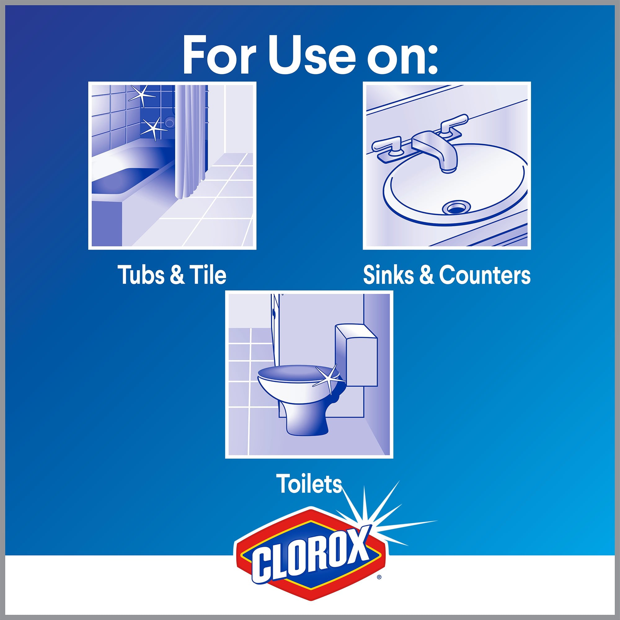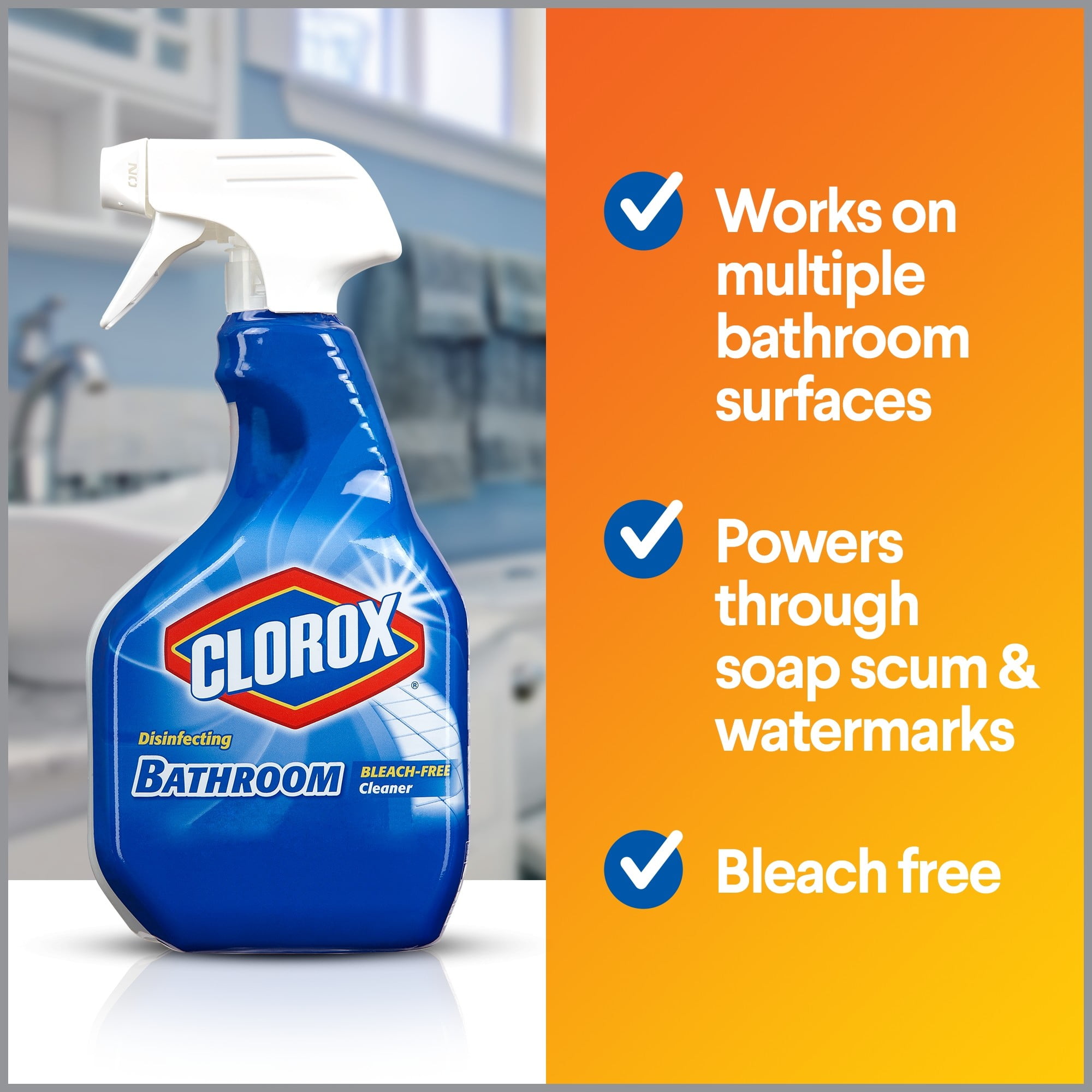 - BATHROOM CLEANER: Make your bathroom sparkle with Clorox Disinfecting Bathroom Cleaner in a spray bottle that cleans, disinfects and kills 99.9% of viruses and bacteria.