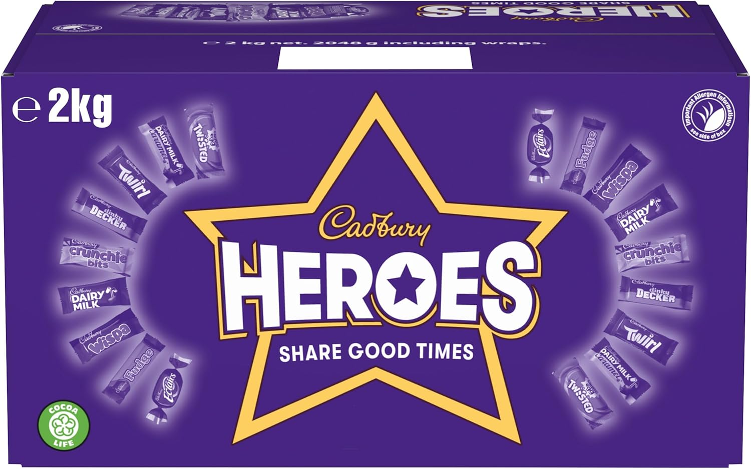 Grab the Sweet Fun at Cadbury Heroes! 2kg Chocolate Bulk Box – Now at an Unbeatable Price! Individually Wrapped Milk Chocolates + Free Shipping! Don’t Miss Out!