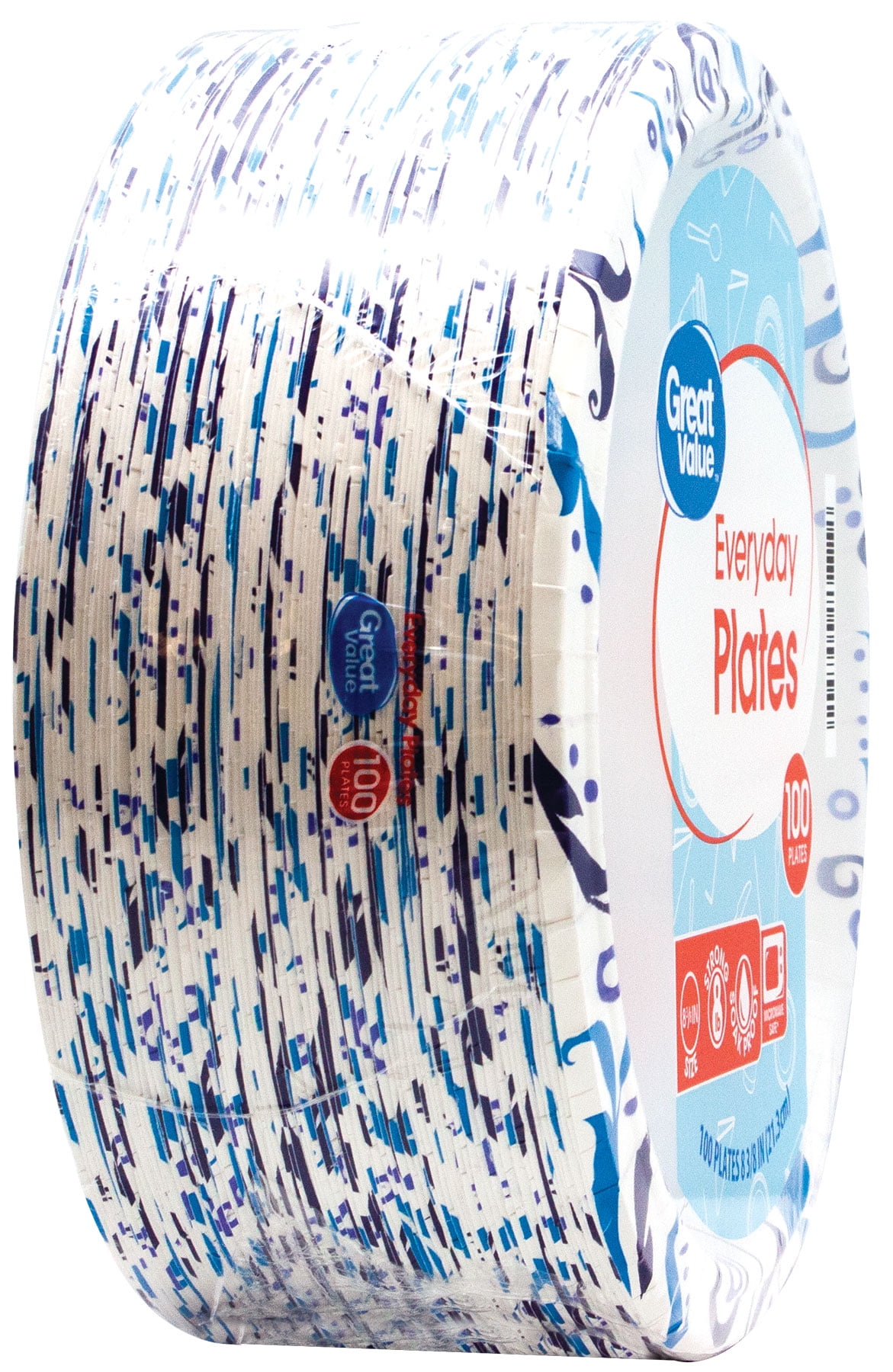 Serve food with ease using Great Value Everyday Paper Plates. They’re perfect for everyday use or for special occasions. These plates are extra-strong and soak proof. Use these plates at your next barbecue, birthday party, while you’re watching the game, at your next pool party or any get together. They are suitable for barbecue dishes, snacks, dinner, lunch, desserts and more. They offer quick and easy disposal and clean-up for when the party is over. This package comes with 100 pleasantly decorated plates making it easy to stock up. These everyday plates are also microwave safe so you can easily re-heat food. Serve up your next meal with Great Value Everyday Paper Plates. Great Value products provide families with affordable, high quality grocery and household consumable options. With our wide range of product categories spanning grocery and household consumables, we offer you a variety of products for your family’s needs. Our products are conveniently available online and in Walmart stores nationwide, allowing you to stock up and save money at the same time.
