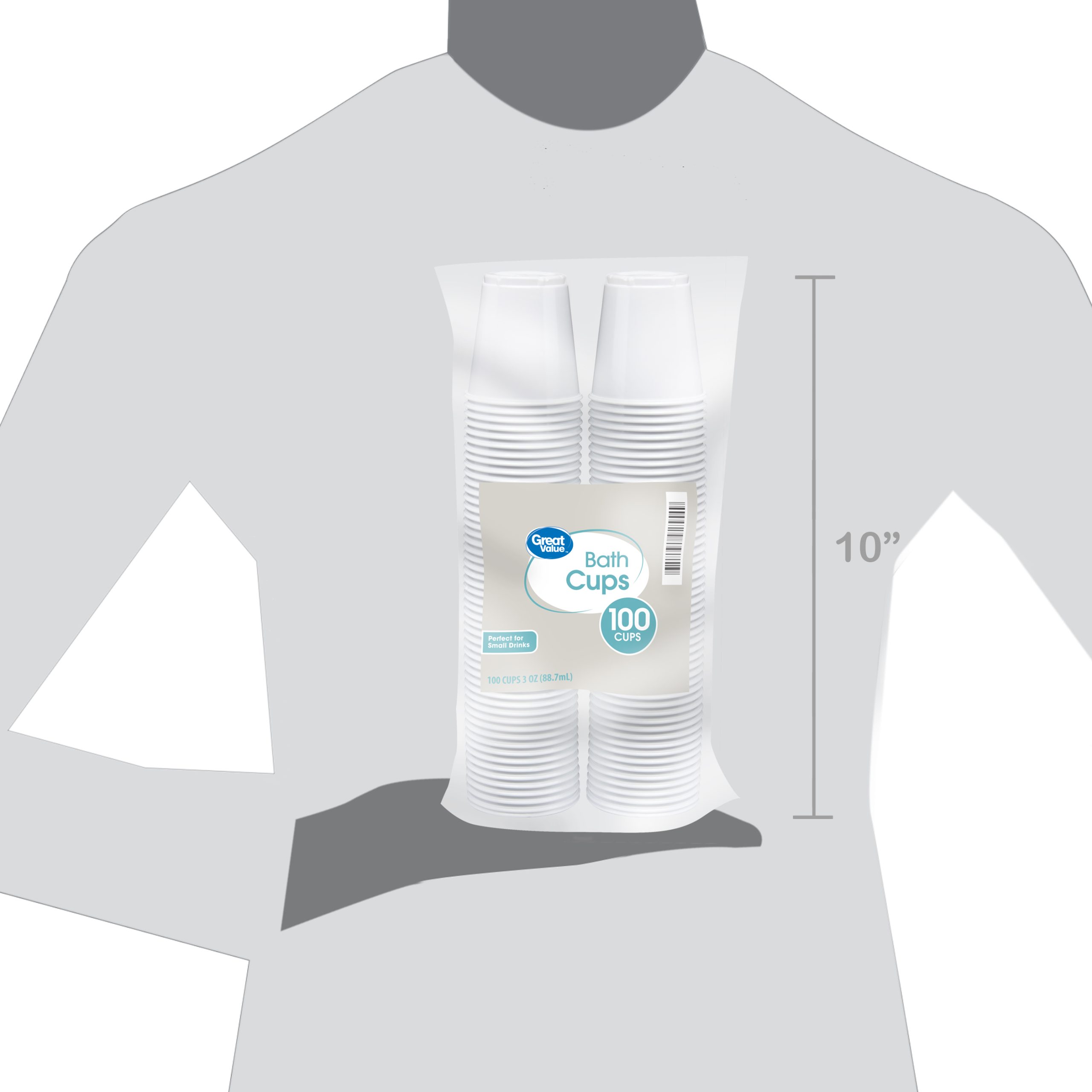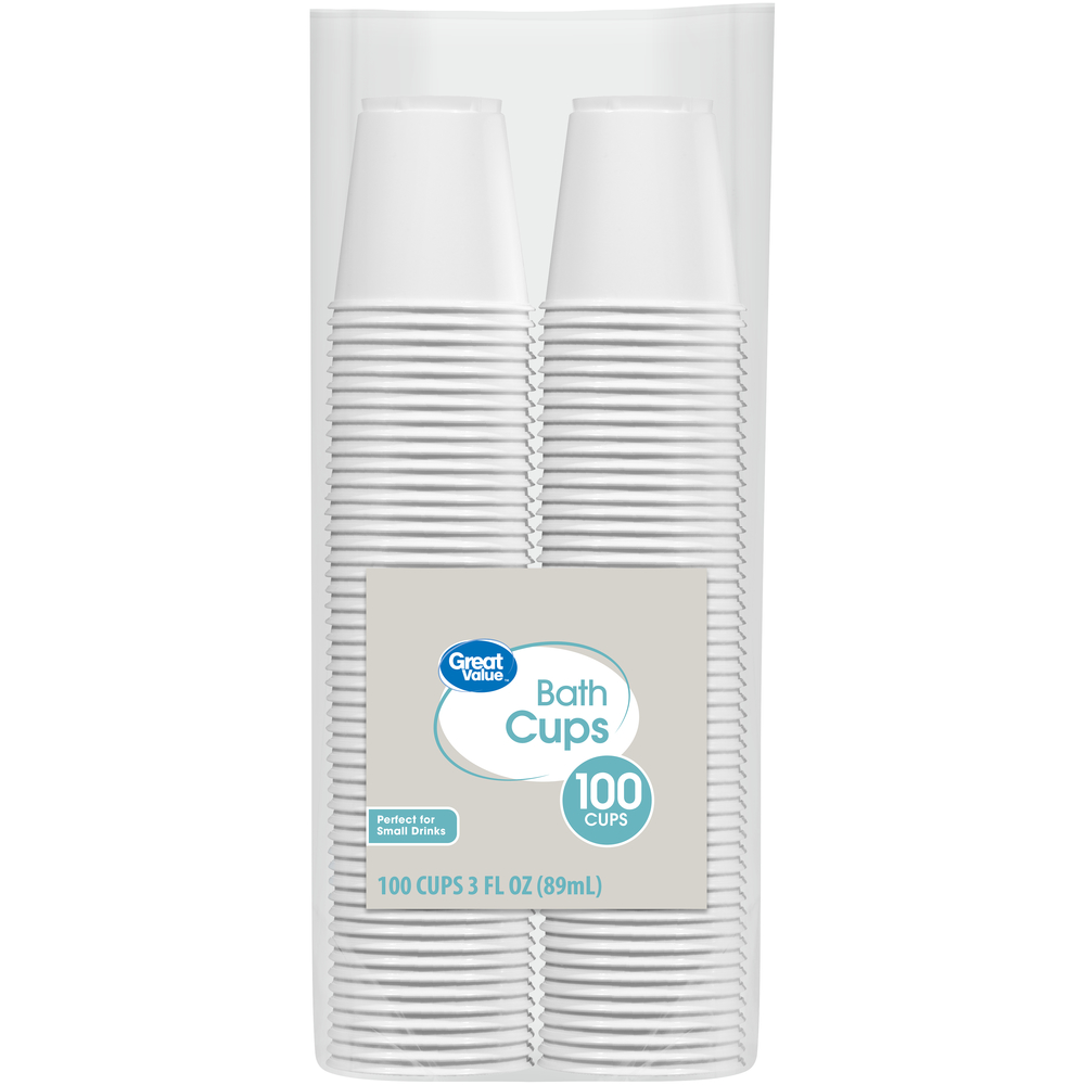 Stock your home or office bathroom with our light, easy to handle Great Value Plastic Bath Cups. This sturdy bathroom essential comes with 100 3-fluid-ounce cups that are made for mouthwash, medicine and more. Not all plastic cups are created equal; the easily stackable design makes it convenient for you to stock up in your home or office closet. The tapered texture of every cup allows for an easy grip without fear of spilling. These disposable cups also mean never having to wash another glass again and make clean up easier than ever.