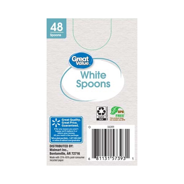 Whether you are planning your next family meal or looking to take your dining adventures outdoors, make sure you reach for our Great Value Spoons. These sturdy spoons are great for everyday meals and make clean up a breeze. Because your family’s safety is always our first priority, these spoons are BPA free to give you peace of mind when serving your loved ones and friends. Prepare to take your next office picnic, ice cream party, or family meal to the next level with our Great Value Spoons. Great Value products provide families with affordable, high quality grocery and household consumable options. With our wide range of product categories spanning grocery and household consumables, we offer you a variety of products for your family’s needs. Our products are conveniently available online and in Walmart stores nationwide, allowing you to stock up and save money at the same time.