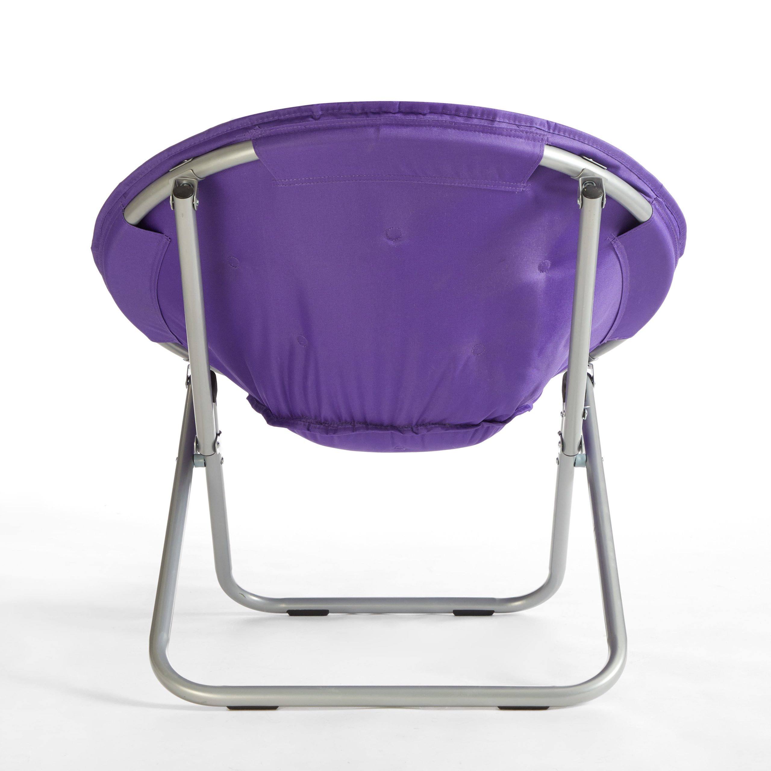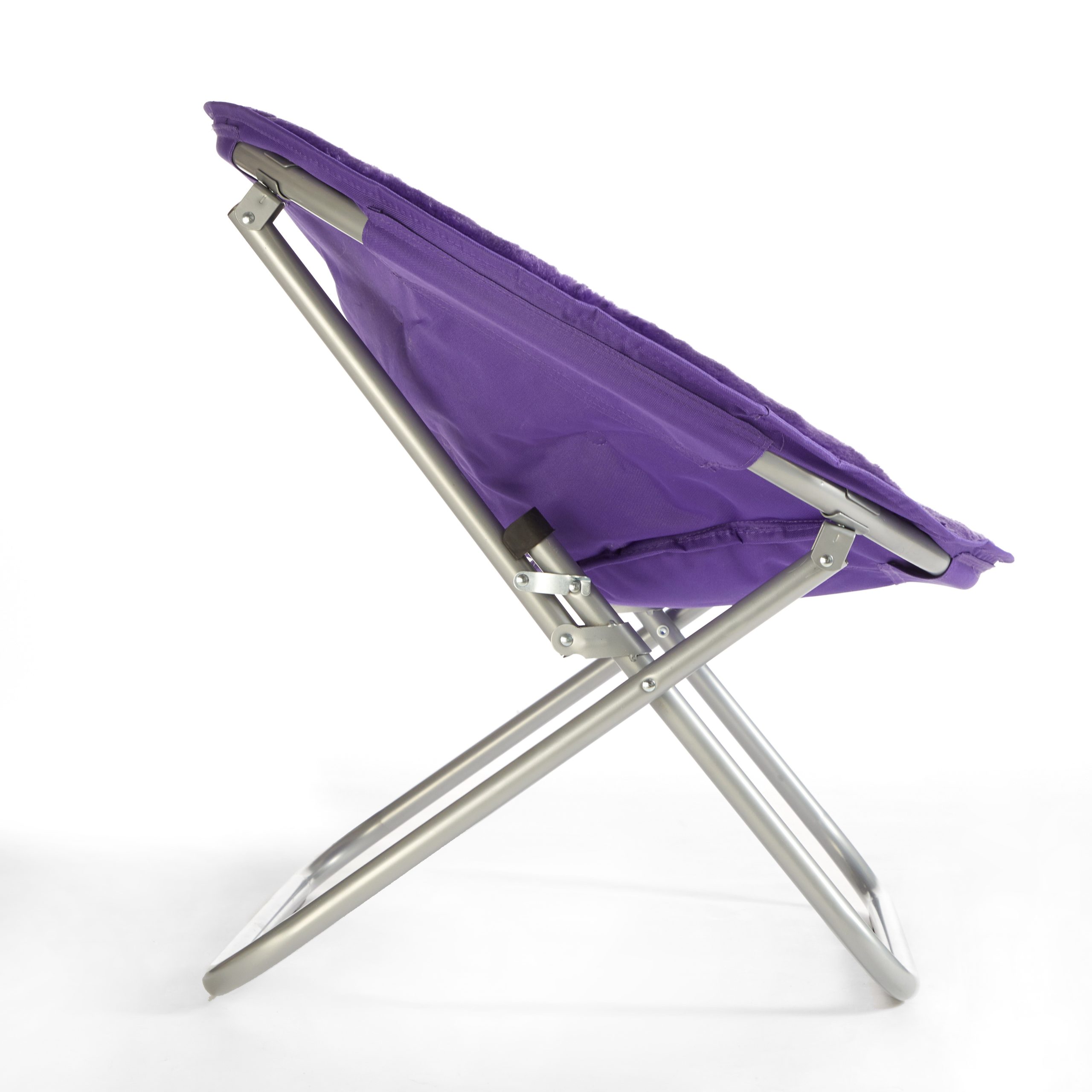 The Mainstays saucer chair’s cushion is made from durable, plush 100 percent polyester upholstery. The faux-fur material is soft and cuddly to the touch. A foldable steel frame supports up to 225 lbs and folds flat when not in use, making it easy to hide this saucer chair out of sight without taking up a significant amount of room in tight spaces. Add additional seating to living rooms, bedrooms, rec rooms, and other areas of your home or apartment with this fun furniture piece. The Mainstays adult faux-fur saucer chair’s selection of multiple colors makes it simple to choose the right design for any space. Add a fun, cozy touch to dorm rooms, lofts, reading nooks, and more with this comfy seat. Provide a convenient place for friends to sit while visiting with this Mainstays saucer chair. No assembly is required, just fold open and sit down to start using this comfortable, portable furniture piece.