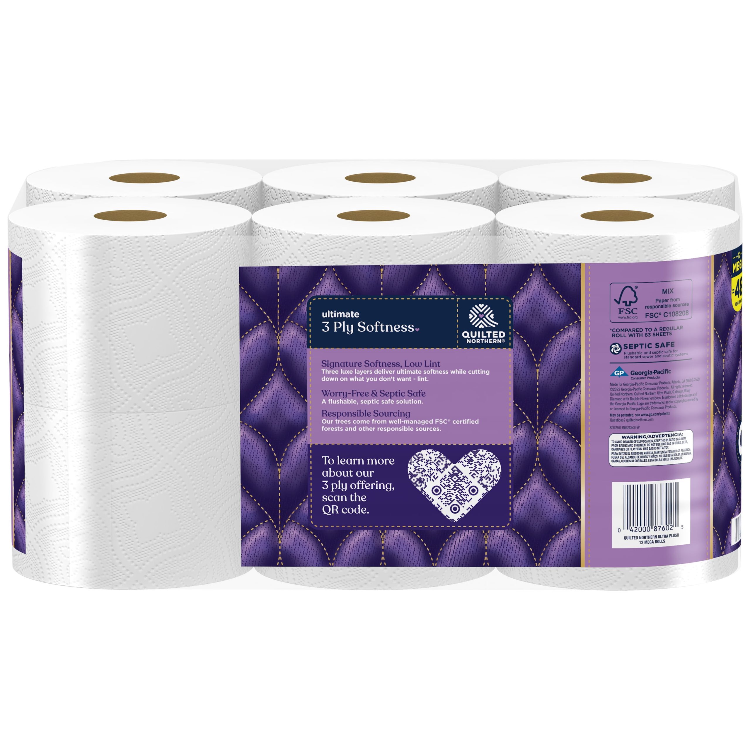 - Each pack contains 12 Mega Rolls of Quilted Northern Ultra Plush toilet paper