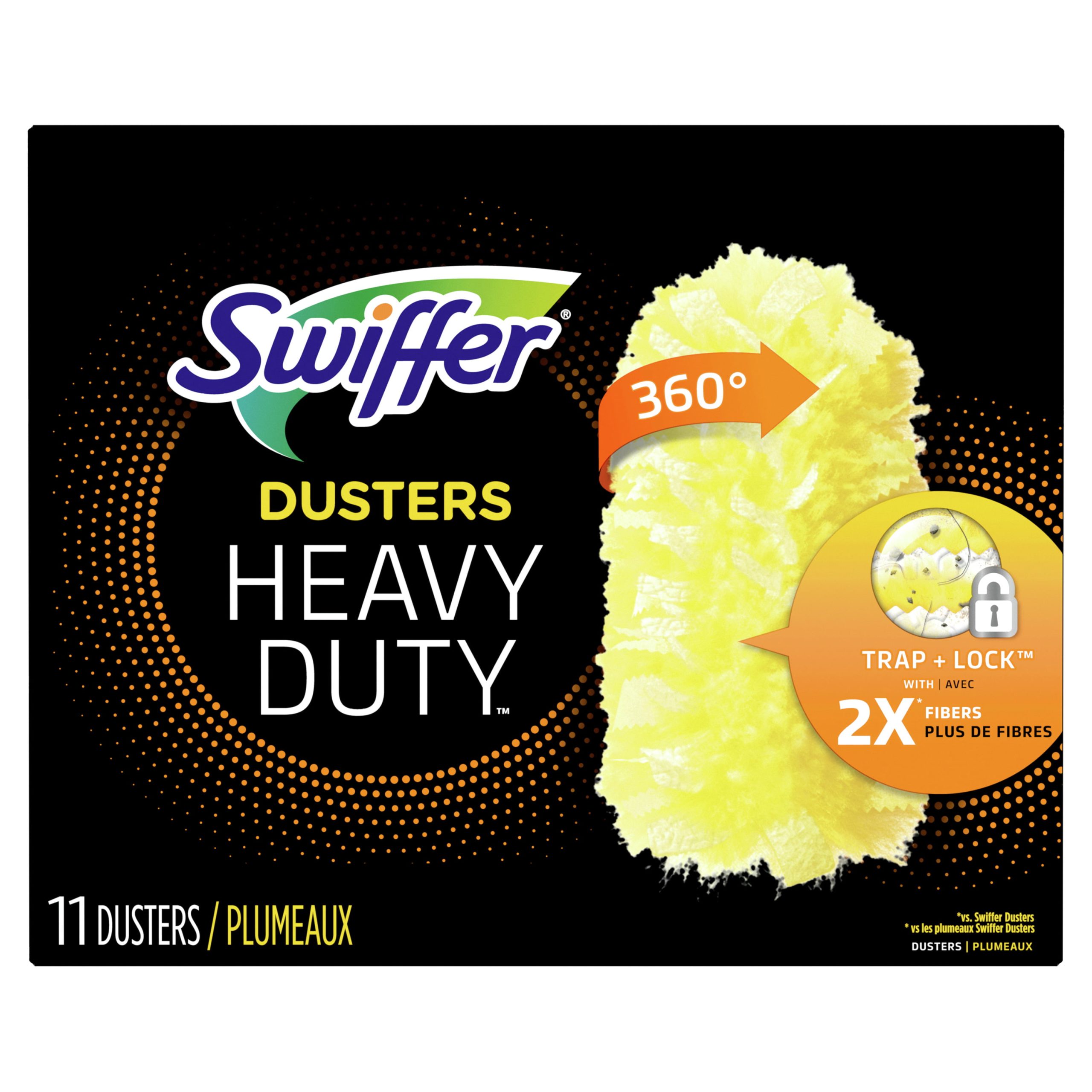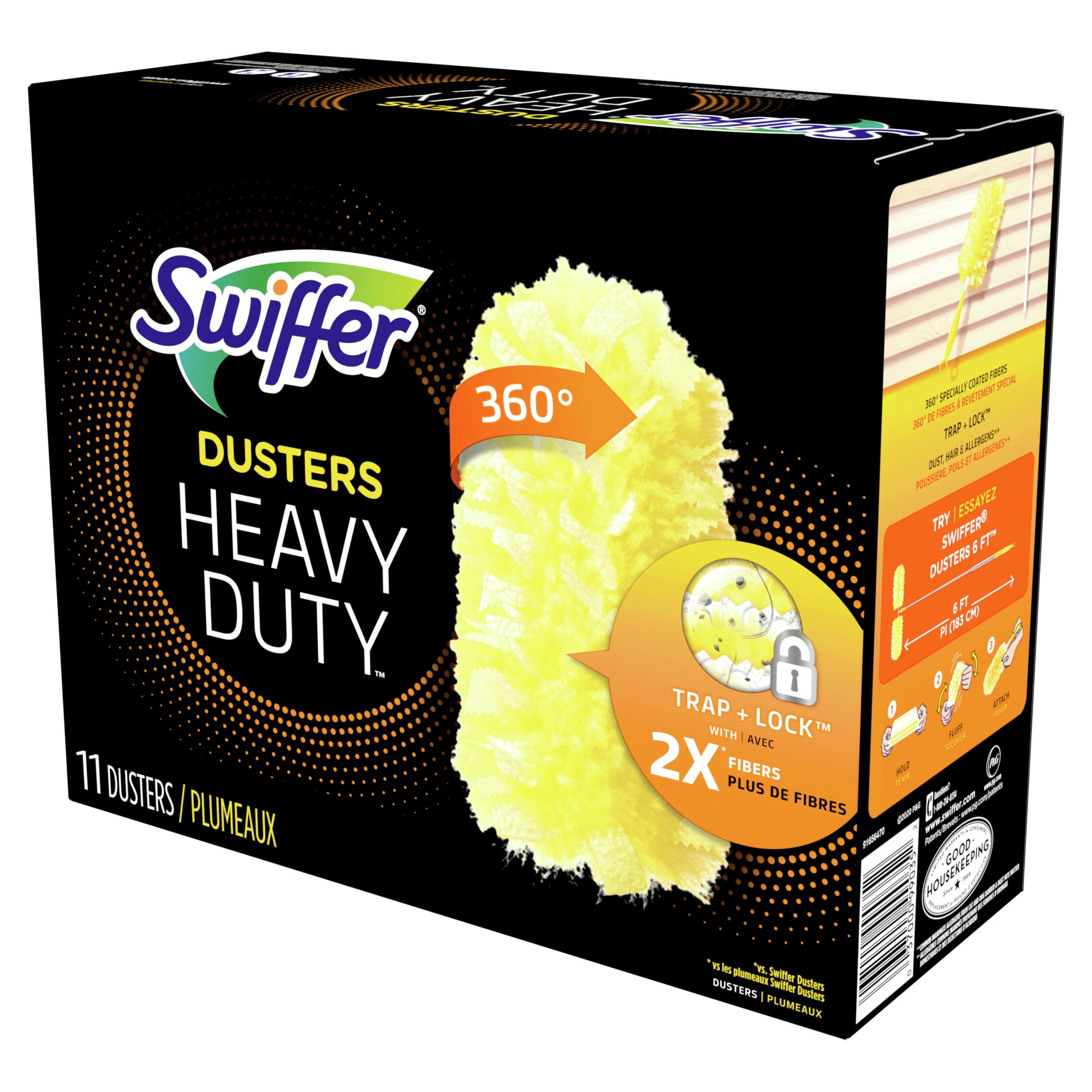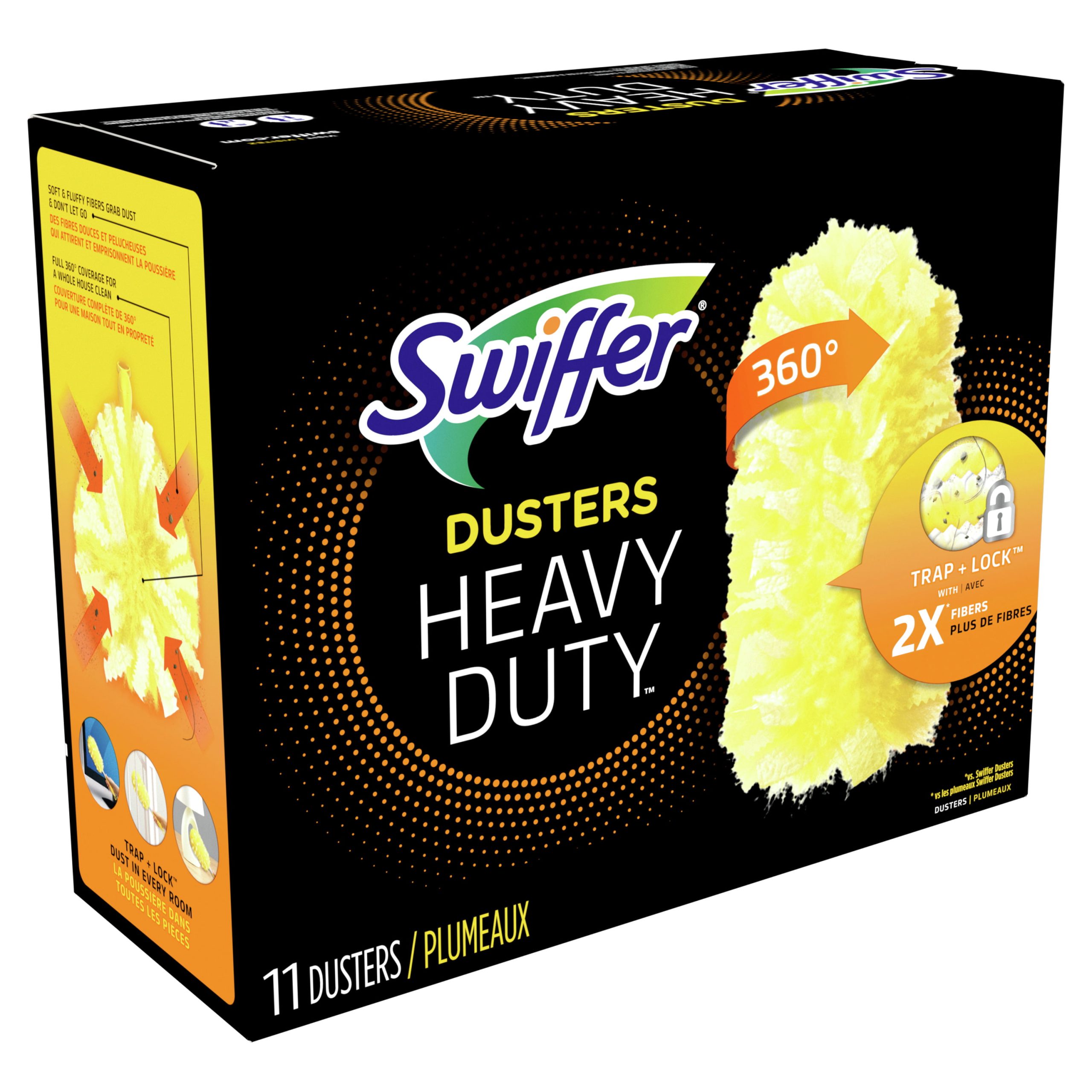 Swiffer Heavy Duty Dusters trap and lock up to 3x more* dust & allergens.** And, with thousands of fluffy, specially-coated fibers and a 360° design, they grab onto dust in every direction and don’t let it go. (*vs. feather duster) (**common inanimate allergens from cat and dog dander & dust mite matter). Unscented, 11 Count