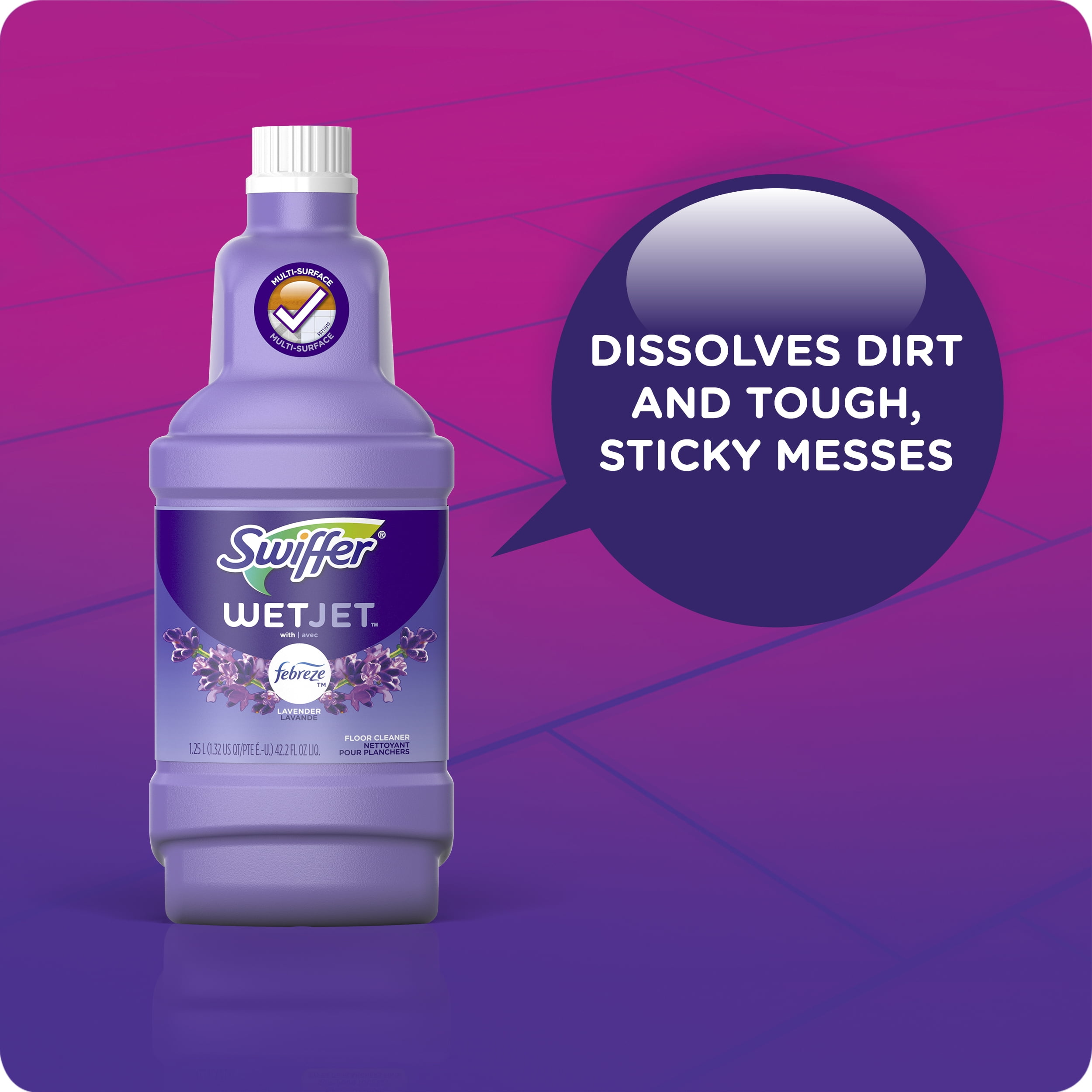 - There’s the perfect Swiffer WetJet solution for any cleaning need! Scents available: Open Window Fresh, Febreze Lavender Vanilla & Comfort, Gain Original Scent, Unstopables Fresh, Mr.Clean Clean Freak Lemon Zest, Antibacterial Fresh Citrus and Wood Edition